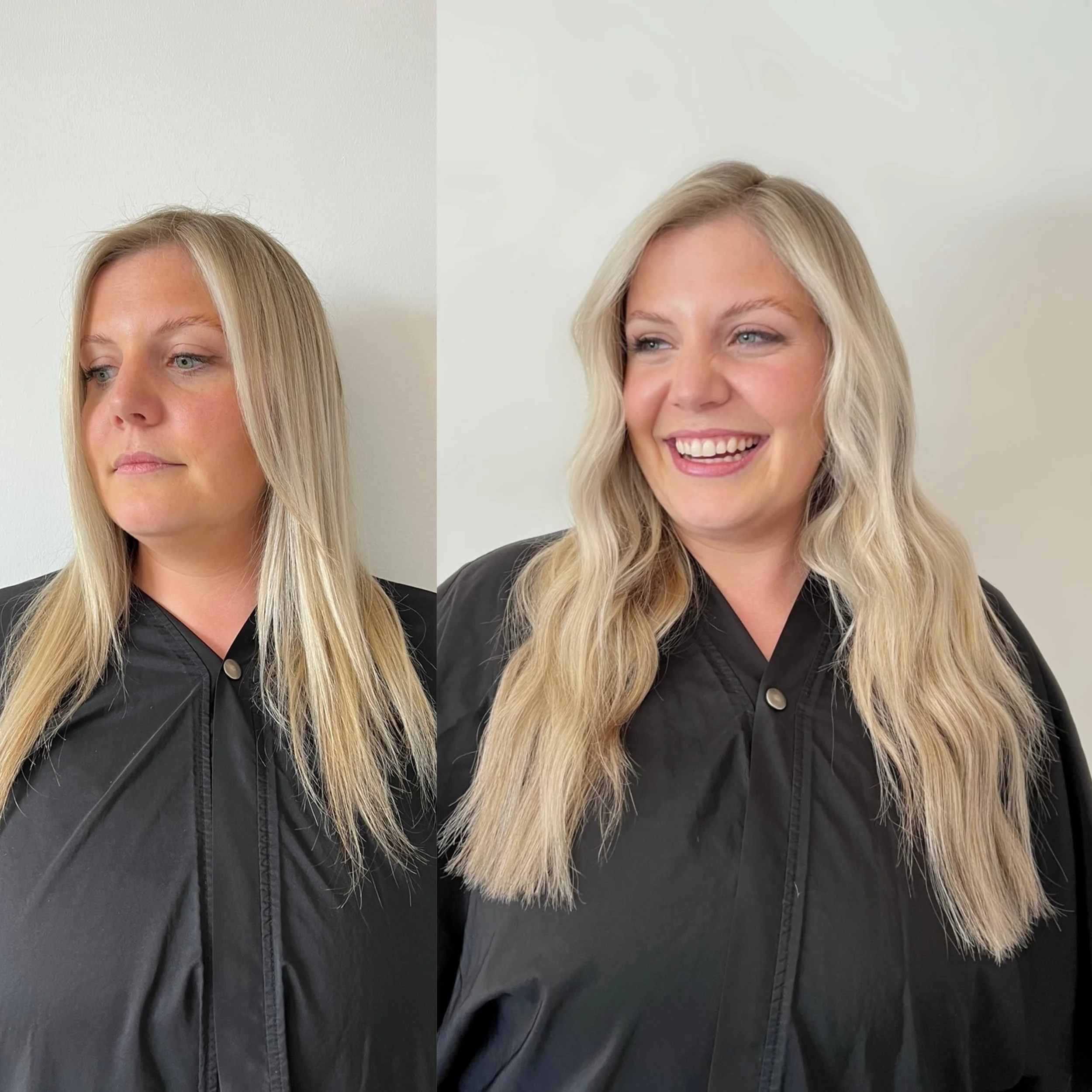 Extensions are installed, cut, and styled for a flawless finish. You’ll leave feeling confident, with everything you need to care for your new hair.